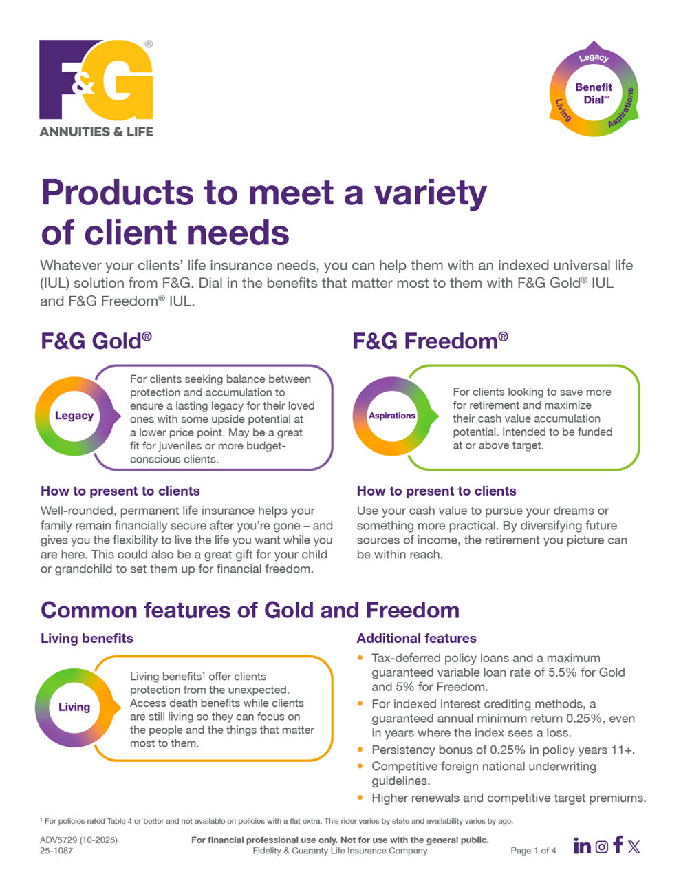 “F&G” is the marketing name for Fidelity & Guaranty Life Insurance Company issuing insurance in the United States outside of New York. Life insurance and annuities issued by Fidelity & Guaranty Life Insurance Company, Des Moines, IA.